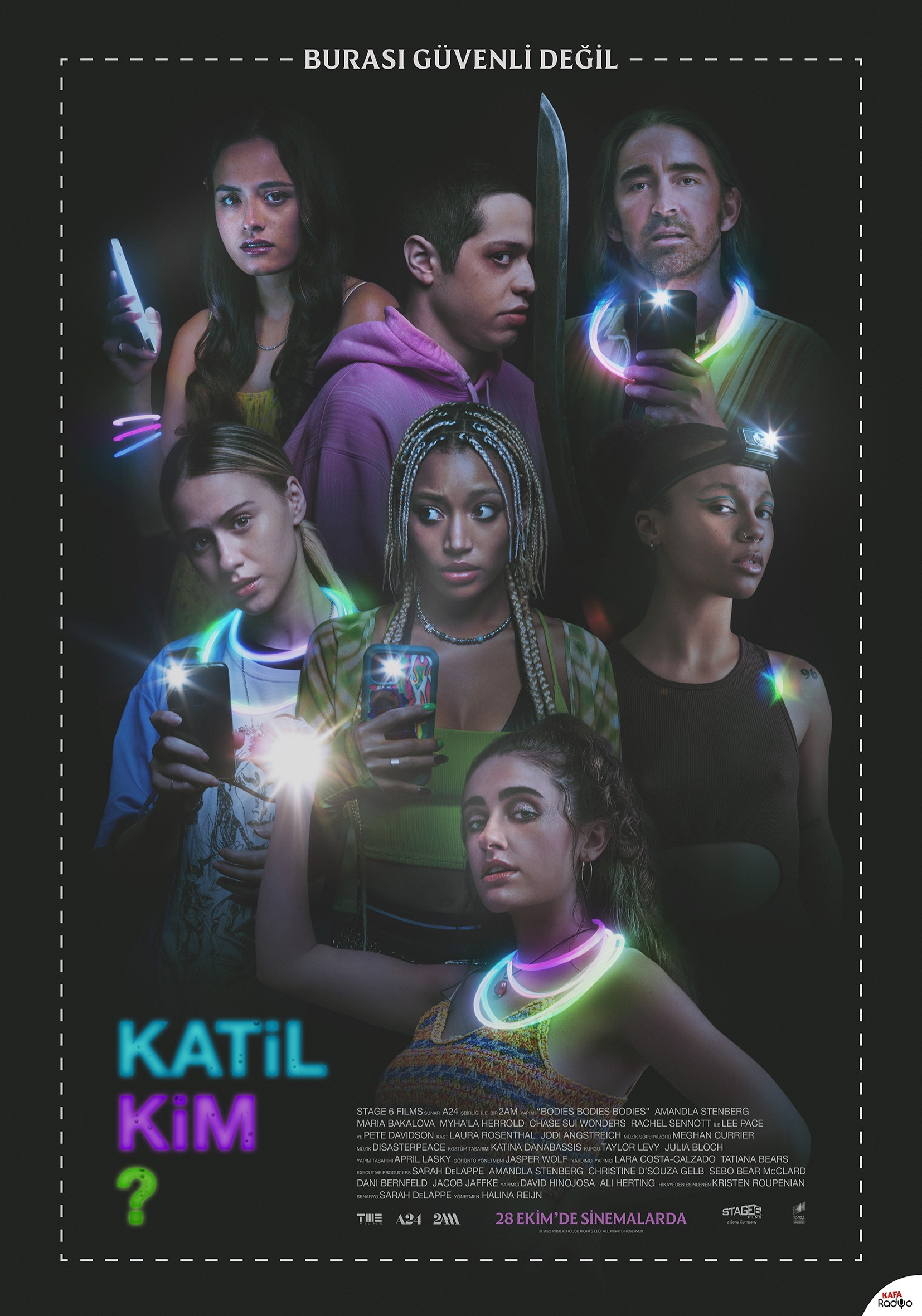 Film 18 Yaş ve Üzeri İzleyici Kitlesi İçindir. Cinsellik veya Çıplaklık Unsurları İçerir. Şiddet veya Korku Unsurları İçerir. Olumsuz Örnek Oluşturabilecek Davranışlar İçerir. BODIES BODIES BODIES